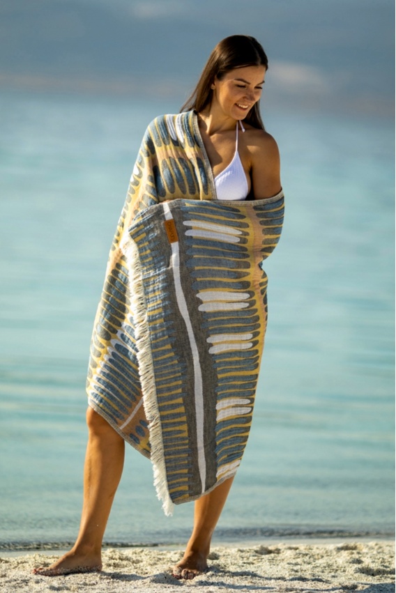 All Chaputs peshtemals signature design elements to striking with colors that will captivate.Designed and and produced in Turkey. All Chaputs peshtemals are made by Organic cotton and have Oekotex-100 certificated.Material : 100% Turkish CottonSize : 90 x 175 cm / 35,43 x 68,89 inchWeight : 330 gr / 0,73 ibs..